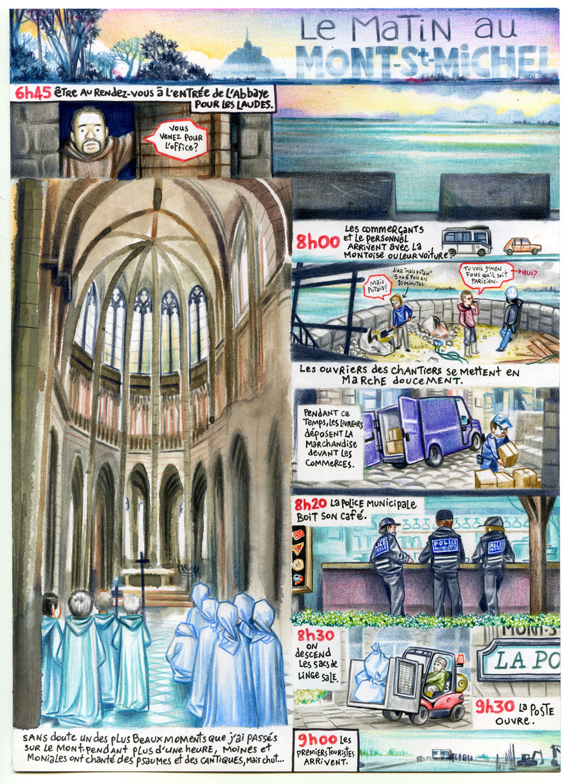 Ah, une dernière précision, je ne vais pas dessiner. Je serai trop occupé à transpirer, me baigner, dormir par terre, éponger ma tente et laver mes caleçons dans les toilettes publiques.